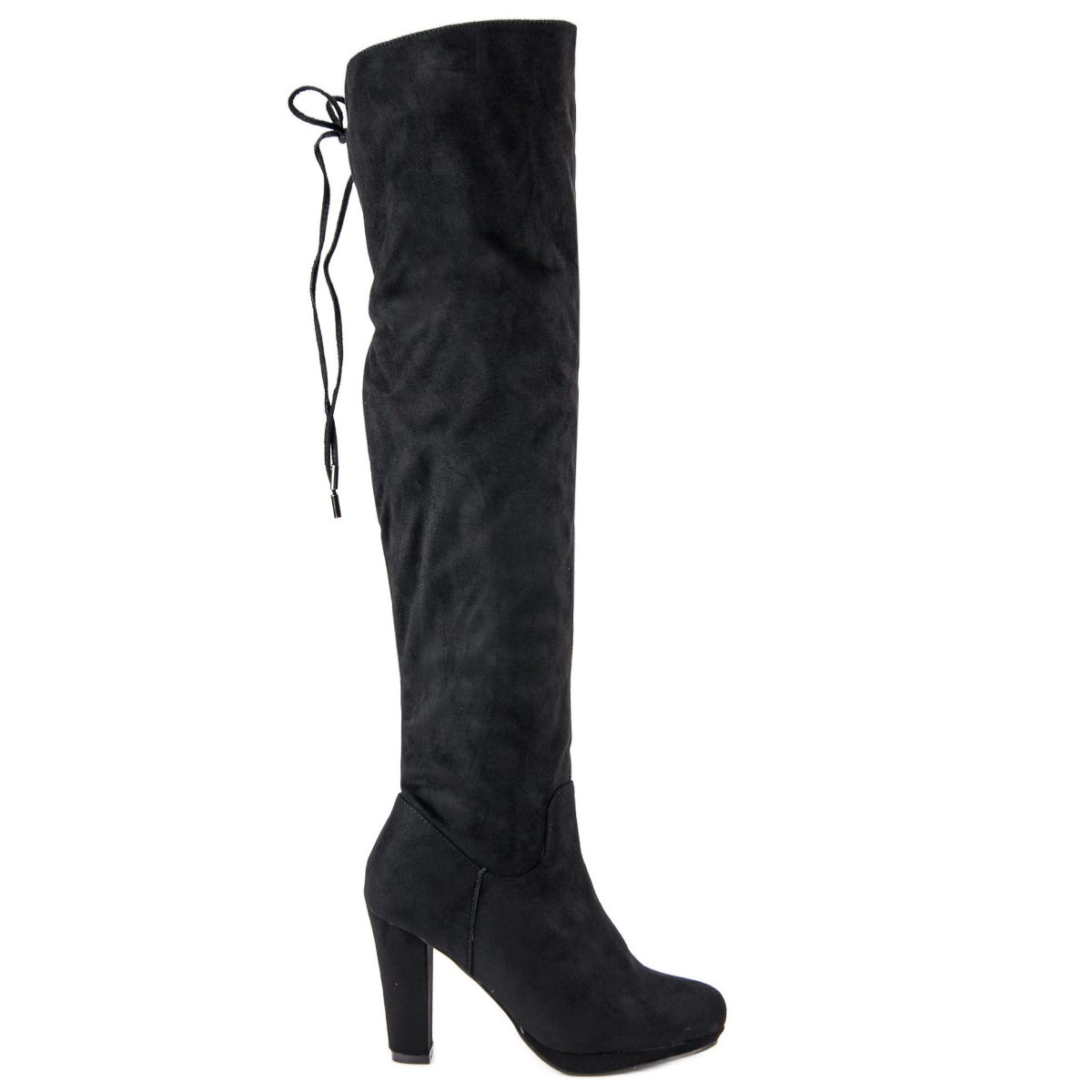 Suede over the knee boots in black are the perfect choice for women who want to combine elegance with comfort on colder days. These stylish boots reach above the knee, which not only adds chic but also provides warmth during autumn and winter walks. Made of ecological suede leather, they are characterized by a unique look that goes well with various styles.