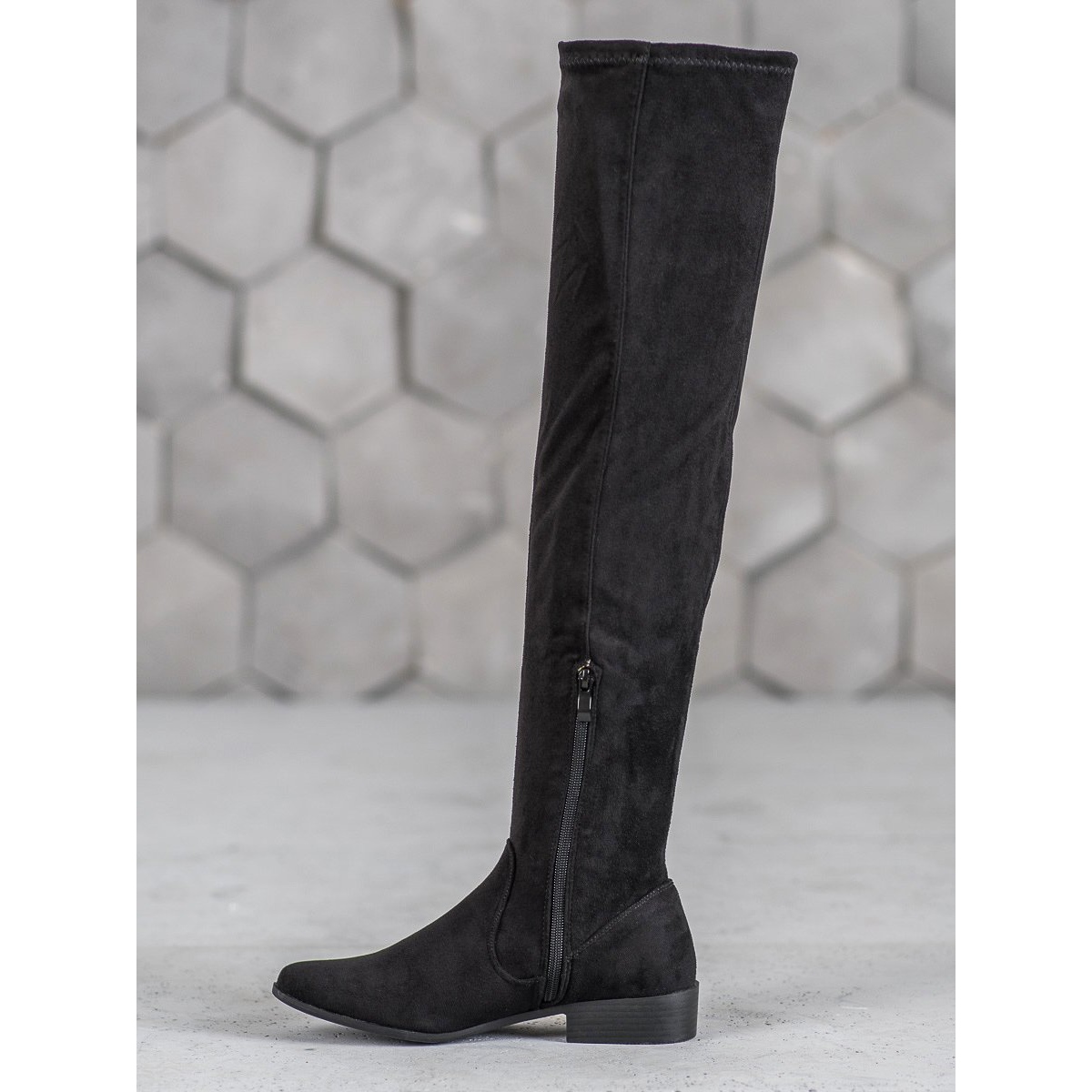 Here are the perfect shoes for women who want to combine style with comfort - black suede over the knee boots from SHELOVET. These sensual boots, made of the highest quality ecological suede leather, are a great choice for colder days. The long upper, reaching below the knee, not only effectively protects the feet from wind and rain, but also optically lengthens the legs, emphasizing their shapely shape.