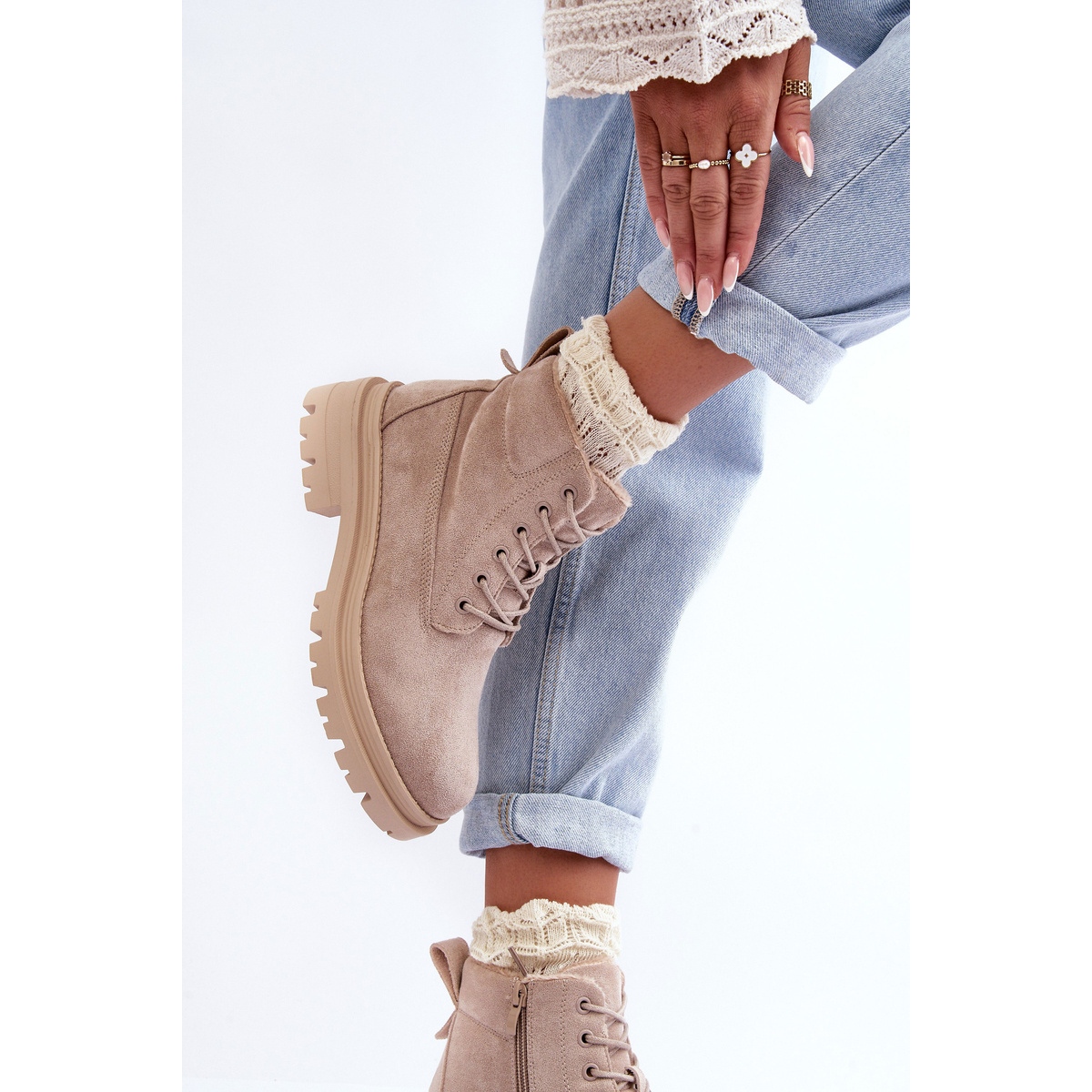 Stylish and practical women's boots made of high-quality eco-eco-part. Set on a stable rubber sole with a flat heel and platform (5.5 cm), perfect for cool, winter days. The interior lined with soft fur provides heat and comfort. The zip fastener makes it easier to insert, and additional lacing allows you to match the shoe to the foot. Stiffened heel - better holding of the foot and stability.