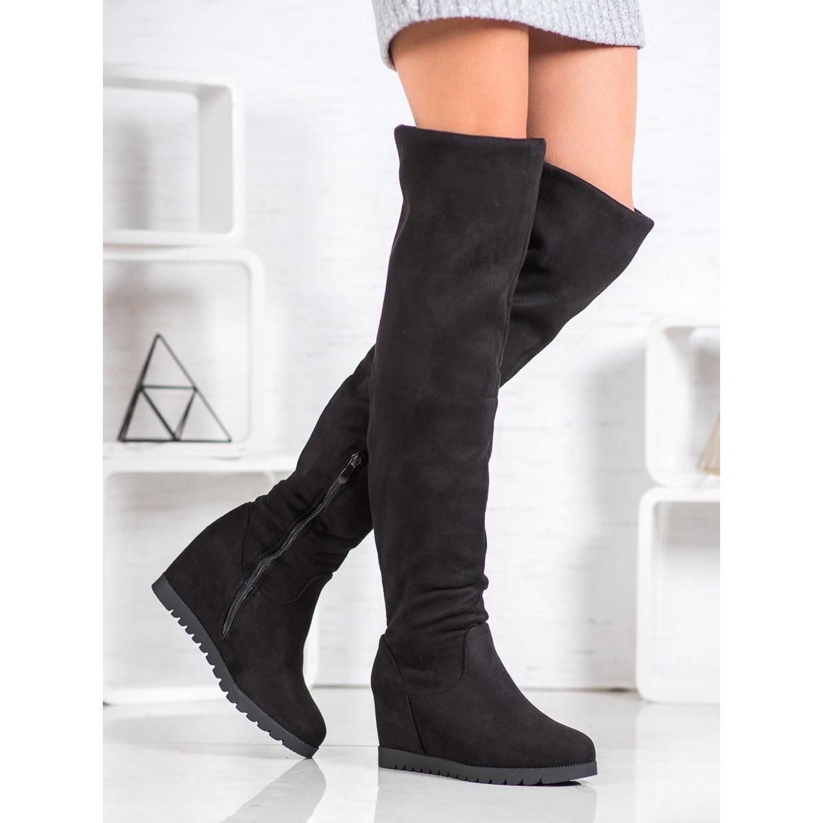 Discover elegance and comfort with the suede wedge boots from SHELOVET. These unique shoes, made of eco-leather with a suede finish, were designed for women who value both style and comfort. The upper reaching below the knee in a universal black color makes these boots a perfect match for a variety of styles - from casual to more formal.