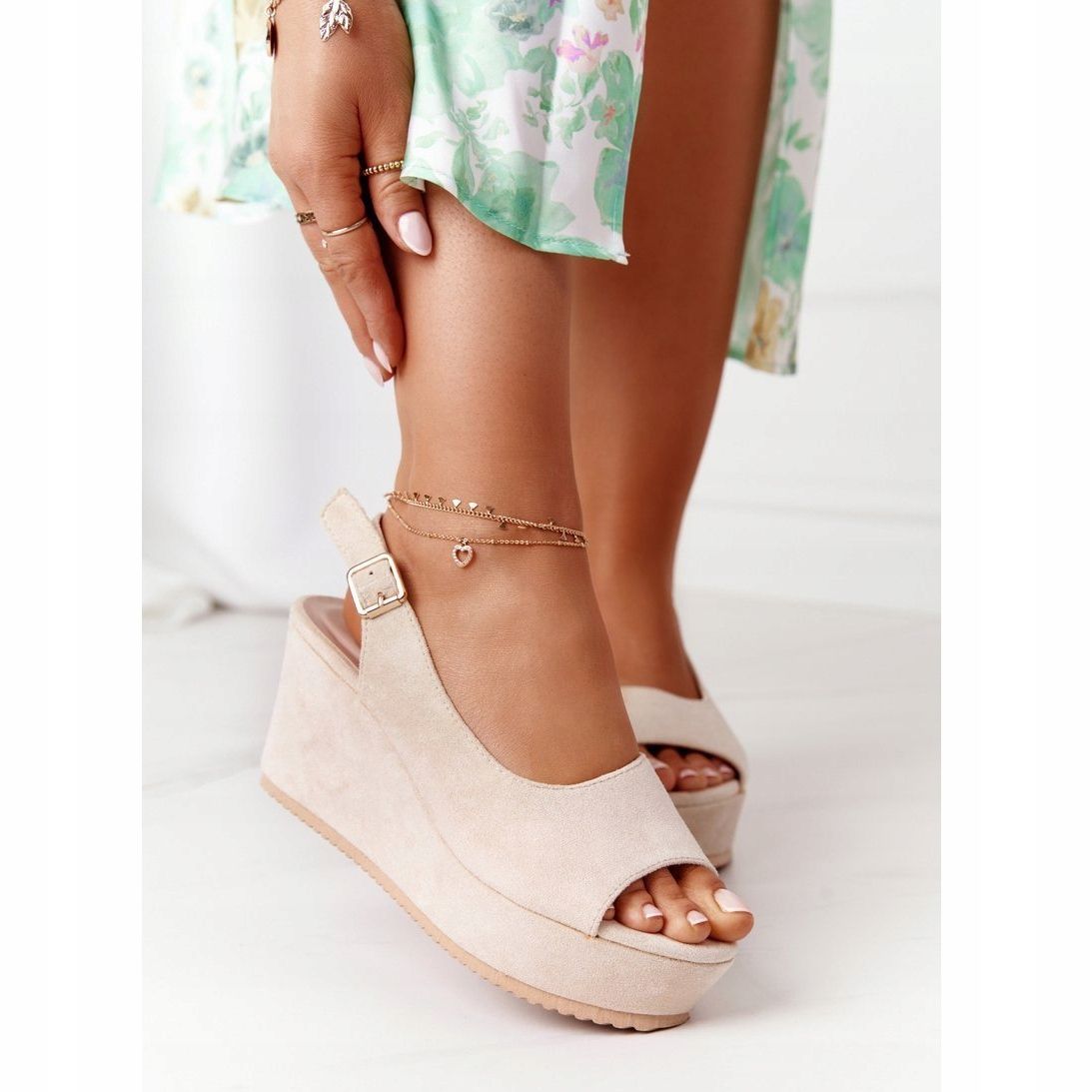 Details: Suede Wedge Sandals Beige Party Time