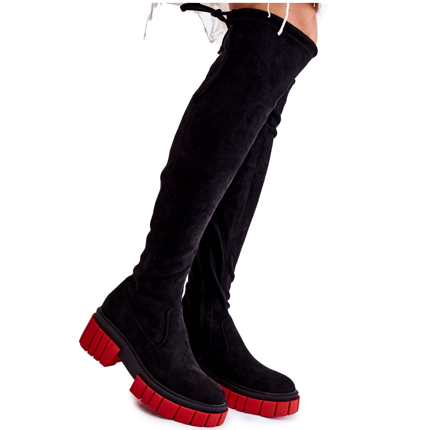 Women's suede boots Cheera Workers-black and red, behind the knee