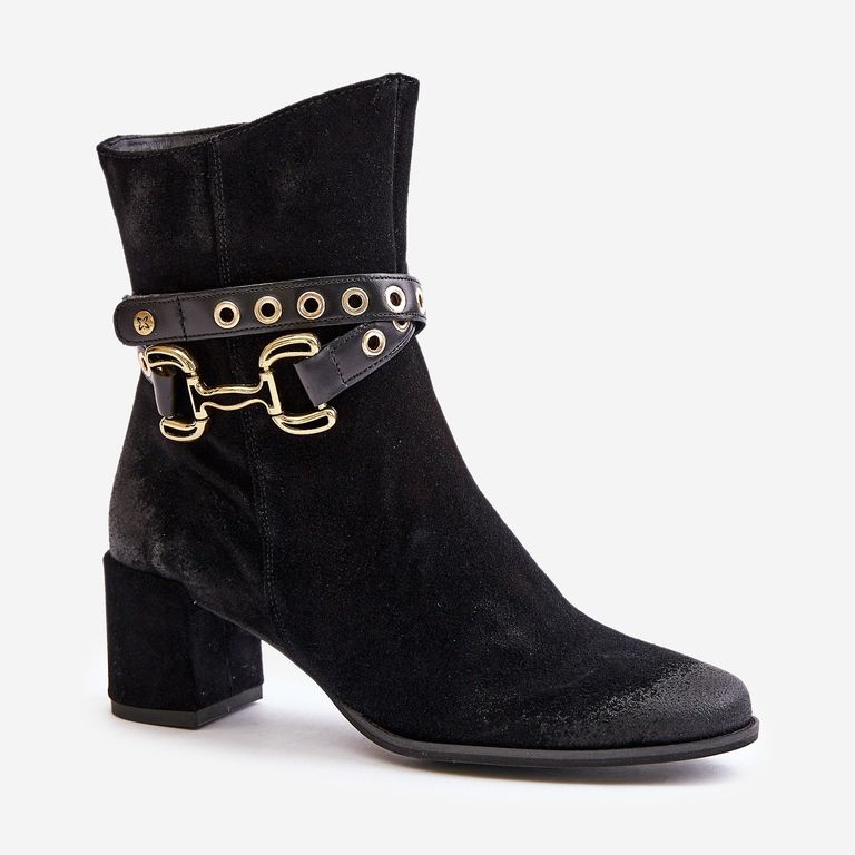 Maciejka Suede Women's Boots On High Heel With Decorative Strap Maciejka 06679-01 Black