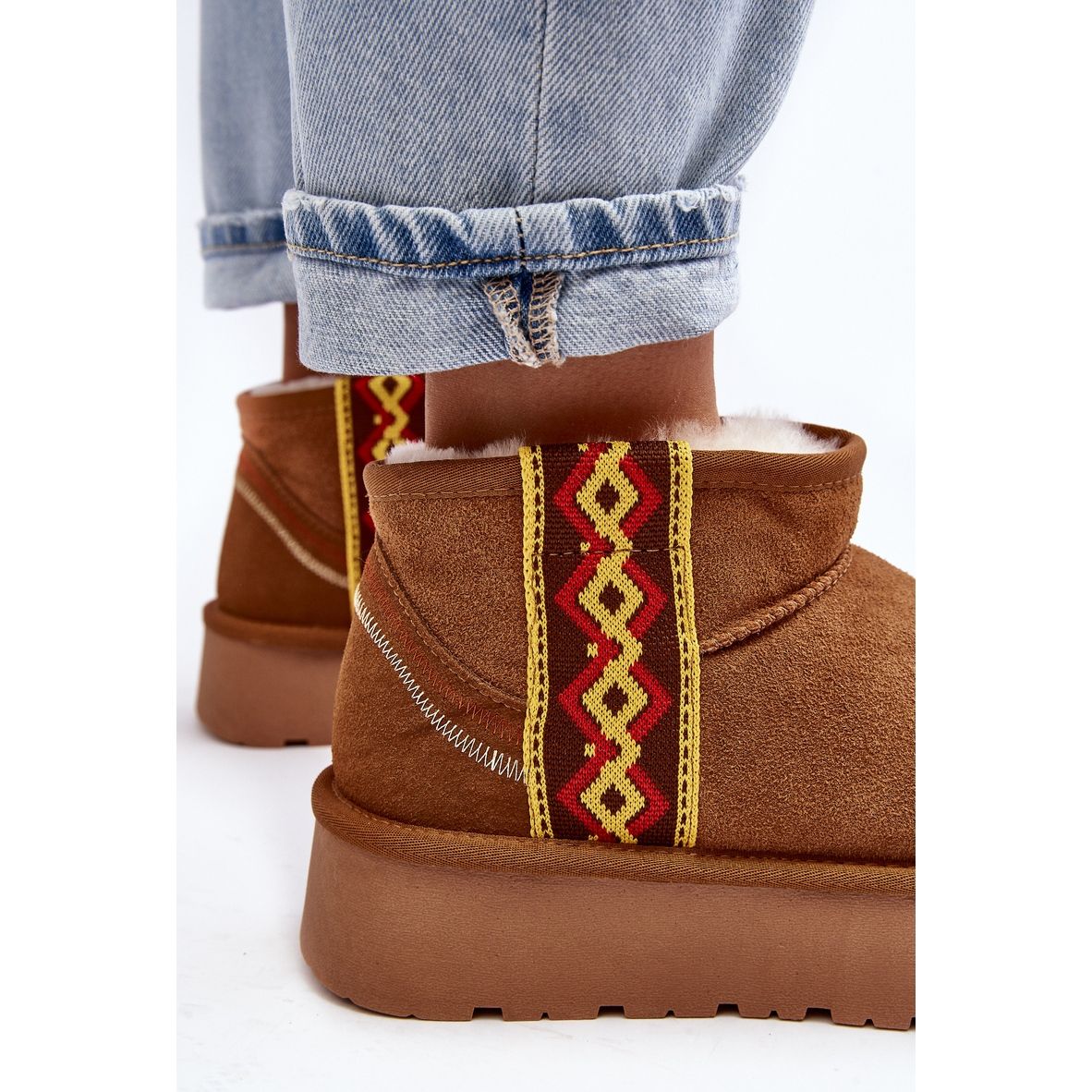 Paying attention to the details, it is impossible not to notice the Aztec pattern that decorates these snow boots, giving them character and a distinctive style. This is an eye-catching element that makes the footwear not only practical, but also a fashionable addition to winter styling.