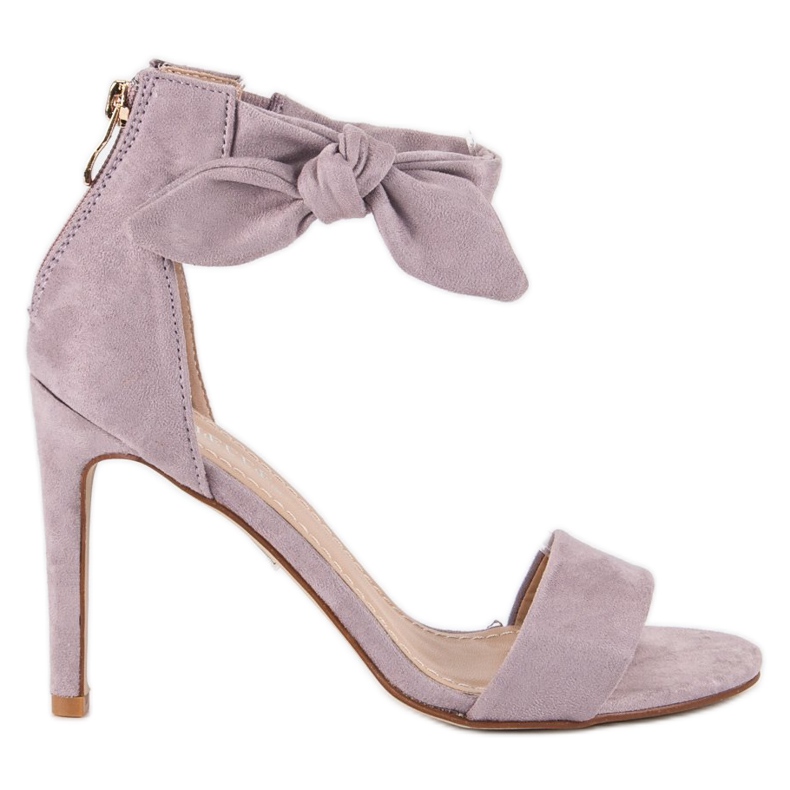 The characteristic feature of these sandals is a high heel in the form of a 10.5 cm stiletto, which optically lengthens the legs and adds lightness to them. Additionally, the bow placed on the upper is a subtle accent, giving the shoes a unique charm. The sandals have no toe, which makes them very airy and ideal for warmer days.