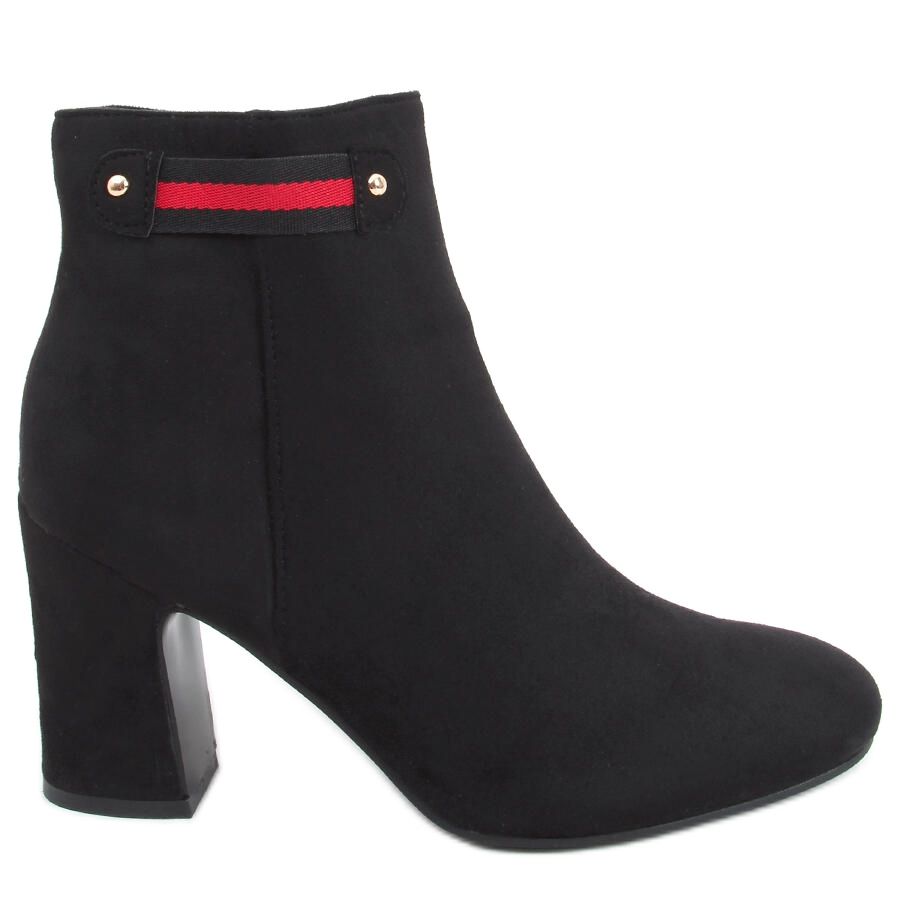 Sunna Black high heel ankle boots are the perfect choice for women who value style and comfort. These elegant, black ankle boots are distinguished by a designer stripe decorating the upper, which gives them a unique character. The stable 9 cm heel guarantees comfort of wearing, even with longer use, making them perfect for everyday use as well as more formal outings.