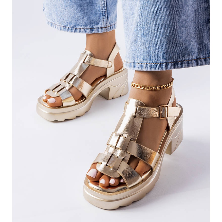 Style, comfort and luxury - these sandals are the perfect choice for summer days and nights full of surprises. BM Gold Sunset block-heeled sandals are footwear in which each step will emphasize the uniqueness of the moment with the glow of gold.