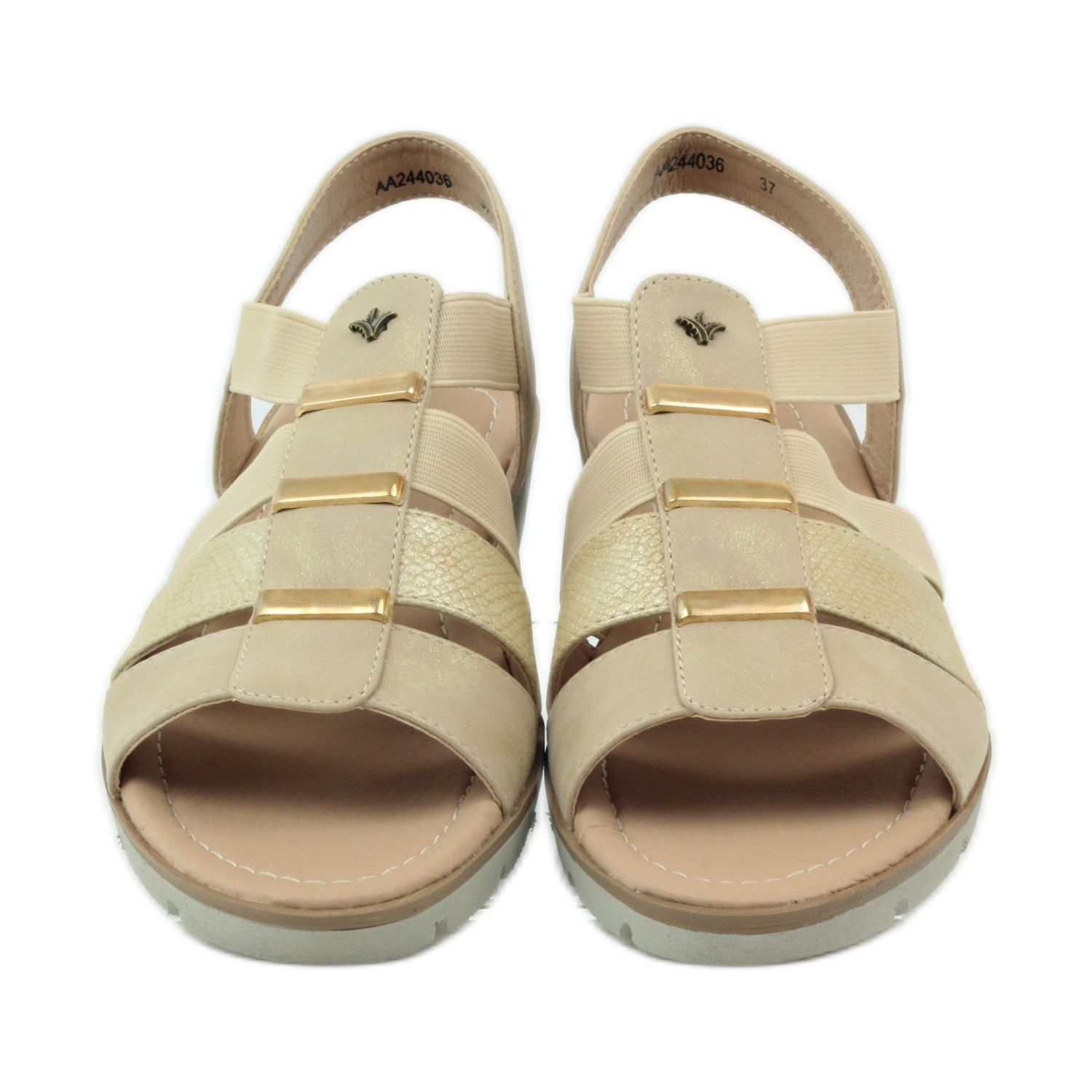 The eco-leather insole, enriched with soft foam, guarantees comfort with every step, and the light, cushioning foam sole protects against micro-injuries. This makes them ideal sandals for people with sensitive feet. They have a classic design on a 3.5 cm wedge, which adds subtle elegance to them, and the variety of colors - brown, beige, yellow and gold - makes them easy to match to any summer styling.