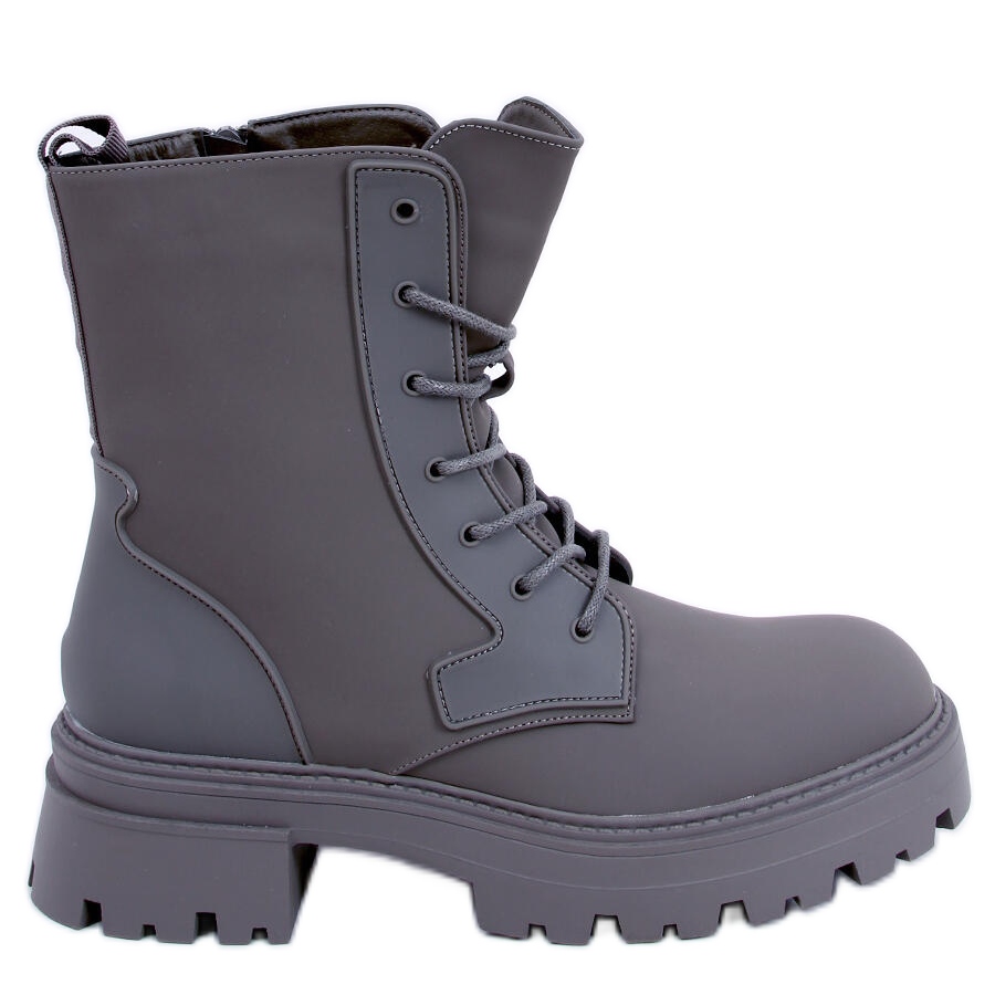 Stylish and comfortable women's boots, perfect for cooler days. A solid, 5 cm sole on the protector adds stability and emphasizes the military, everyday nature of the shoes. Made of grain ecological leather in a matte finish, with a delicate fur inside - they provide heat and comfort when wearing.
