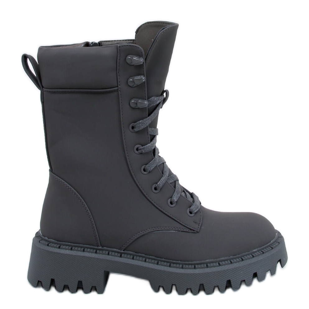 Stylish workers in a military climate that combine comfort with a timeless design. The Tamas model in khaki color is made of ecological leather with a matte, grain finish. Classic lacing allows you to perfectly match the foot of the foot, and the zipper on the side of the upper makes it easier to put on. A round nose, ankle and a flat heel with the platform give the shoes a universal, urban character.