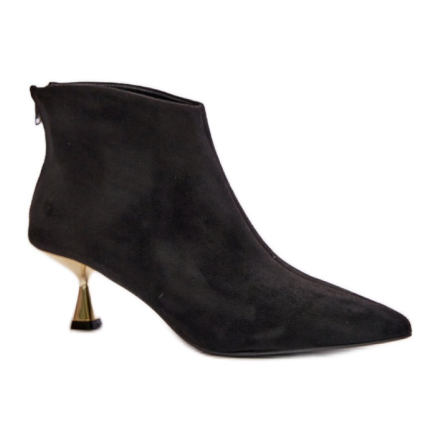 The boots were designed with attention to every detail. Made of high quality ecological suede leather, they are not only visually attractive, but also environmentally friendly. A decorative 5 cm high pin adds elegance and emphasizes the slimness of the legs. In addition, the noses in the spitz introduce a sophistication note to the styling, which makes these shoes perfectly fit into the female style.