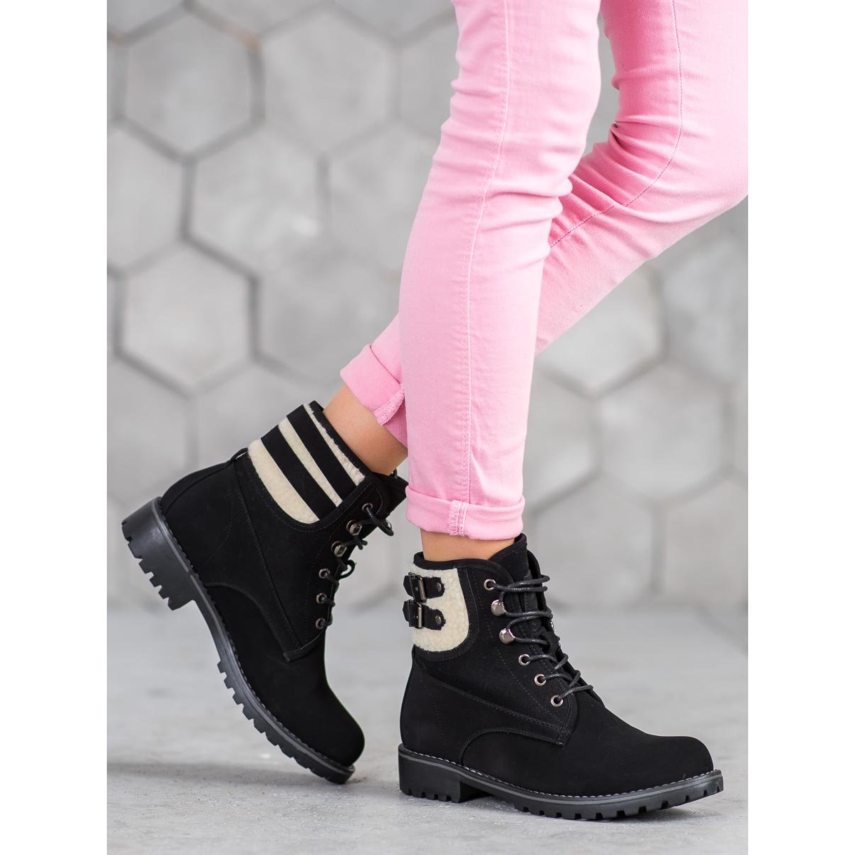 SDS Hikers have lacing, which allows for precise adjustment to the shape of the foot, and a solid, synthetic sole with tread guarantees good grip on various surfaces. Thanks to the 3.5-centimeter heel, you will not only gain optical lengthening of the legs, but also comfort of everyday wear.