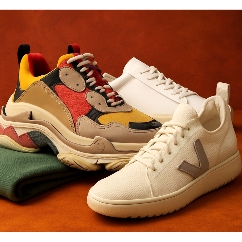 The decade of 2010 was the moment when sneakers entered the world of high fashion for good. Collaborations with fashion houses (Balenciaga Triple S, Gucci Ace, Louis Vuitton Archlight) made sneakers cost as much as top-class formal shoes. Chunky sneakers dominated the catwalks and streets, redefining the concept of aesthetics. Minimalist white sneakers (Common Projects, Axel Arigato, Koio) have become the basis of the modern men's wardrobe - universal, elegant, versatile. Sustainability – growing ecological awareness has led brands to introduce sneakers made of recycled materials (Adidas x Parley, Allbirds, Veja). Reselling culture has reached astronomical proportions - limited models reach prices of thousands of dollars on the secondary market (StockX, GOAT). Sneakers have become an investment item and a collector's item like works of art.
