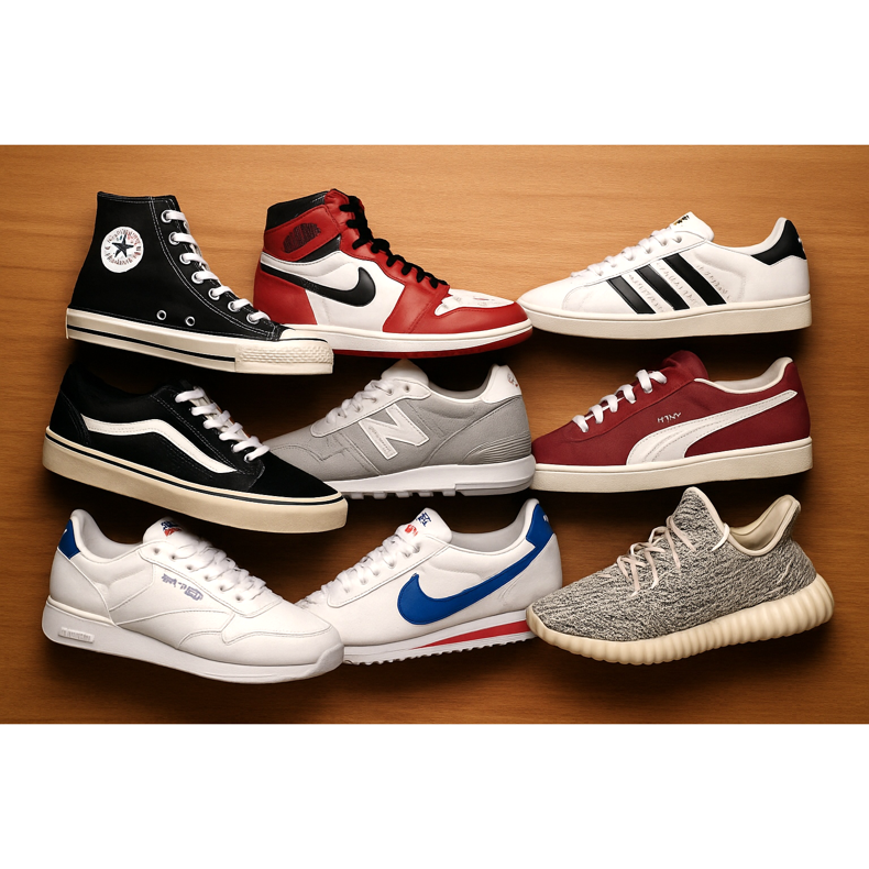 The most iconic models in the history of sneakers are: Converse Chuck Taylor All Star - the longest-produced model, a symbol of timelessness. Nike Air Jordan 1 - an aesthetic and cultural revolution, the most desirable collector's model. Adidas Superstar – a transition from the pitch to the street, a symbol of hip-hop. Nike Air Max 1 (1987) – the first model with a visible Air cushion, the work of Tinker Hatfield. Vans Old Skool – an icon of skate culture. Reebok Classic Leather - minimalist elegance of the 80s. New Balance 990 - technology Made in the USA, iconic dad shoe. Puma Suede – a suede classic for breakdancing and b-boying. Nike Cortez - an iconic running shoe popularized by Forrest Gump. Yeezy Boost 350 – a modern sneaker hype phenomenon.