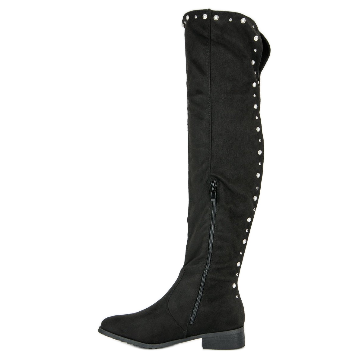 Black musketeer boots with beads from Cm Paris are a great option for women who value style and comfort. Made of high-quality ecological suede, these classic boots look extremely elegant, while at the same time being practical for everyday use. The high upper reaching above the knee emphasizes the figure and adds character to any styling.
