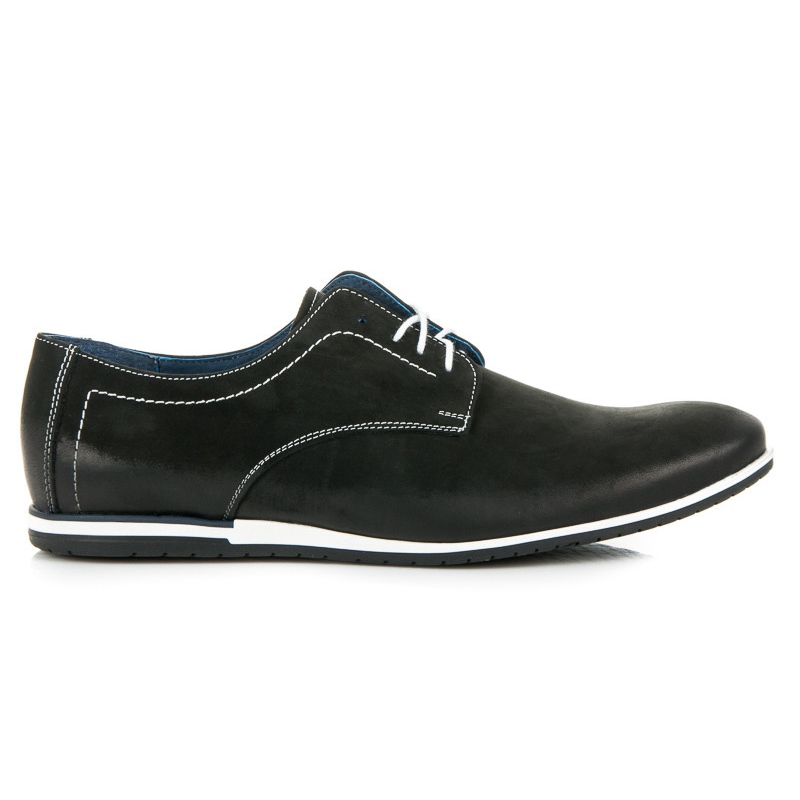 Elegant, black LUCCA shoes are a universal proposition for men who value a combination of elegance and comfort. Made of natural outer leather and lined with a leather insert, they ensure all-day comfort. A model with a round toe, a built-up and stiffened heel and a lace-up fastening ensure a secure fit and stabilization of the foot.