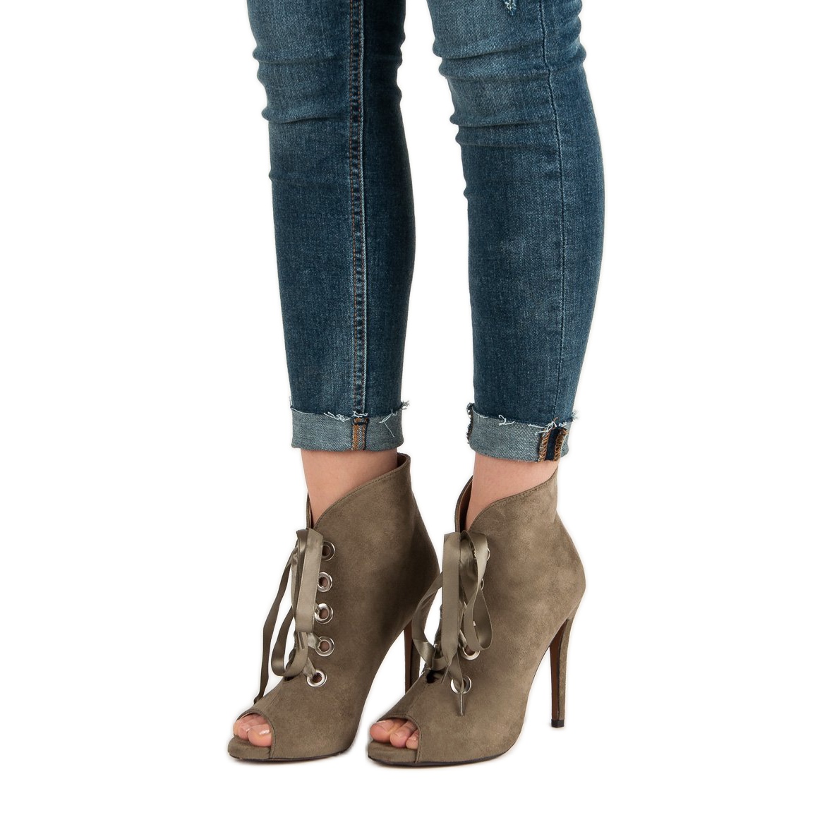 Discover elegance and style with the green Open Toe lace-up ankle boots from Bestelle. These unique shoes, made of high-quality ecological suede leather, perfectly fit into the latest fashion trends, combining comfort with a unique design.