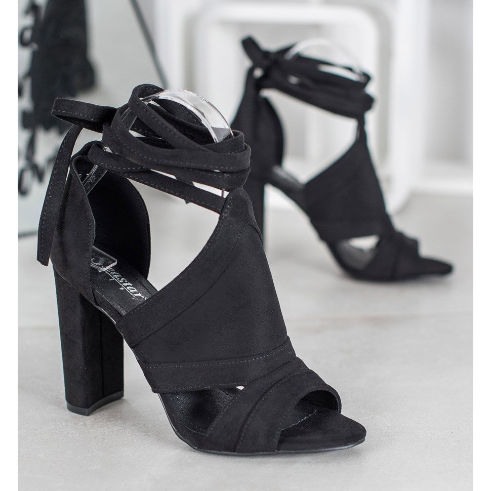 Made of high-quality ecological suede, these sandals look incredibly impressive. Their tapered toes give them a fashionable character, and the lacing around the ankle ensures not only a perfect fit but also comfort of wearing. With a well-thought-out design and a built-in, stiffened heel, these sandals guarantee stability, which is crucial with a 10 cm heel.
