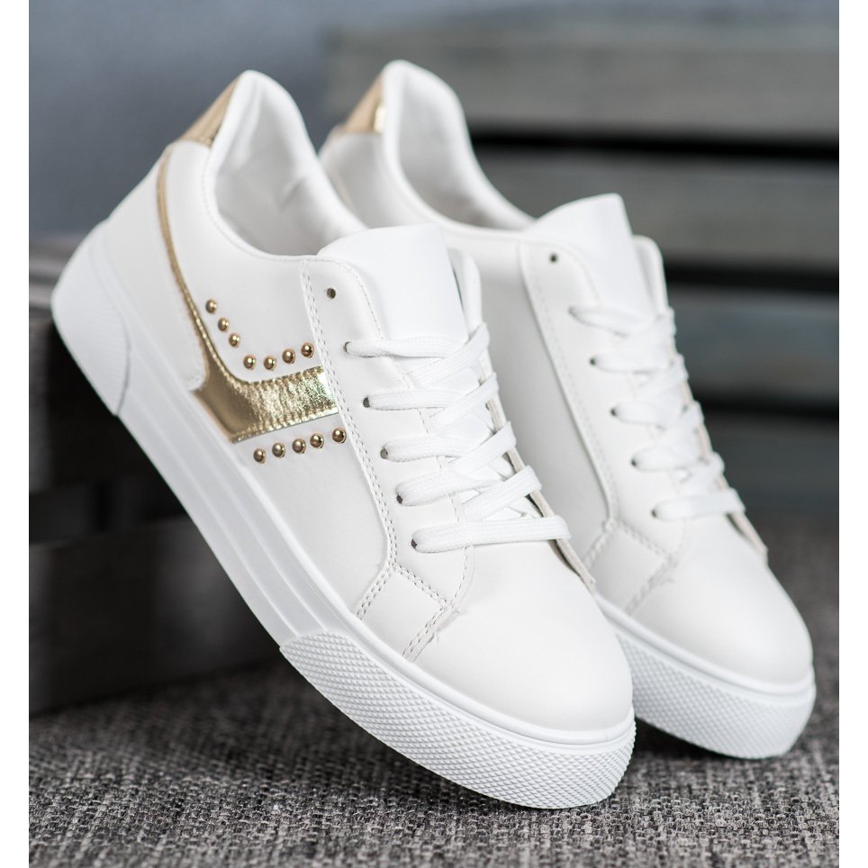 SHELOVET Lace-up Shoes with Gold Decoration in white are an ideal choice for women who value a combination of style and comfort. These modern sports shoes are perfect for everyday use as well as outdoor activities.