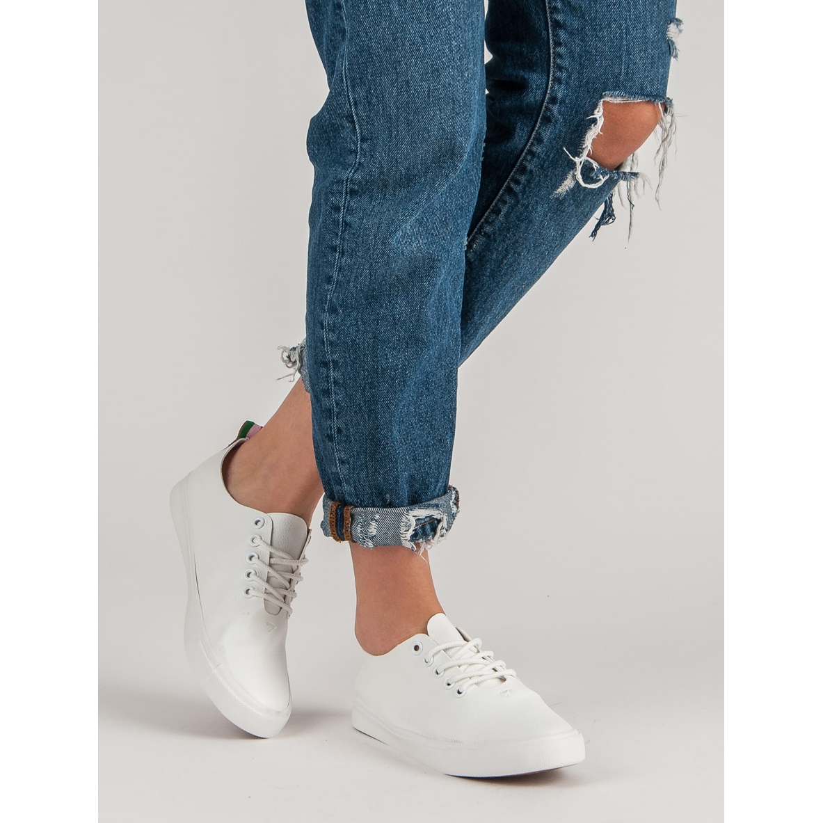 These white lace-up sneakers are perfect for both school and work days, perfectly complementing casual looks. With their universal color, they can be easily matched with other items of clothing, making them an incredibly versatile addition to your footwear collection.