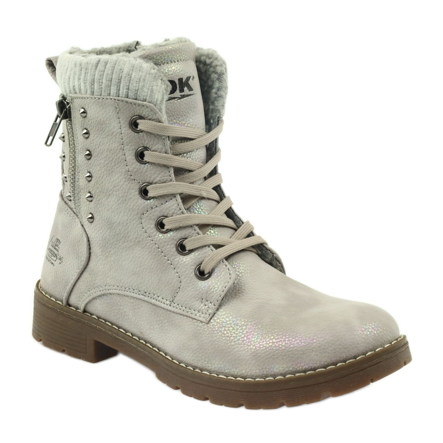 We present gray pearl timber boots on fur from the DK brand, which have become a real hit of the winter season 2022. These elegant trappers not only impress with their design, but also provide unparalleled comfort and warmth. Made entirely of ecological leather, they are ideal for everyday, casual styles, being a perfect complement to any wardrobe.