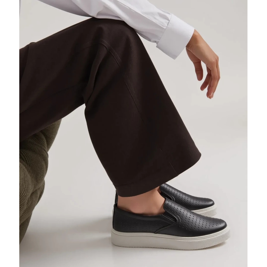 We present Openwork Slip-On Towns Black sneakers, which will introduce freshness and elegance to every daily stylization! These black sneakers made of delicate ecological leather material are distinguished by an extremely breathable openwork pattern, which is not only fashionable, but also comfortable to wear.