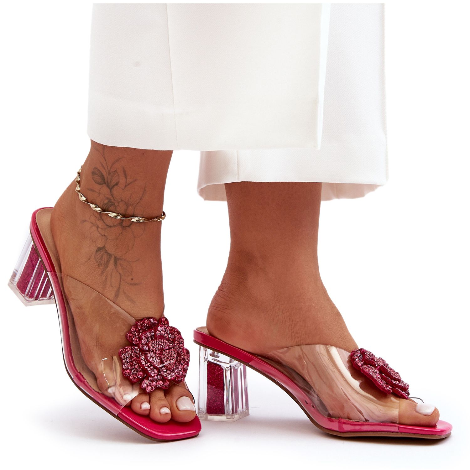 Details: Transparent Flip-Flops On A High Heel With Fuchsia Decoration S.Barski MR1037-20 pink