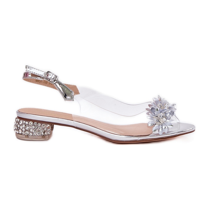 Details: S.Barski Transparent low-heeled sandals with mr51-709 silver decoration
