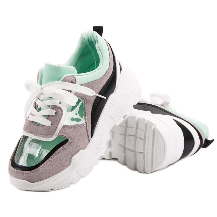 The sneakers have details in shades of gray and an elegant mint accent, which harmonize with the white, 6-centimeter platform. Thanks to the comfortable lace-up fastening and soft heel, these shoes will provide you with comfort in all conditions, from spring walks to autumn outings.