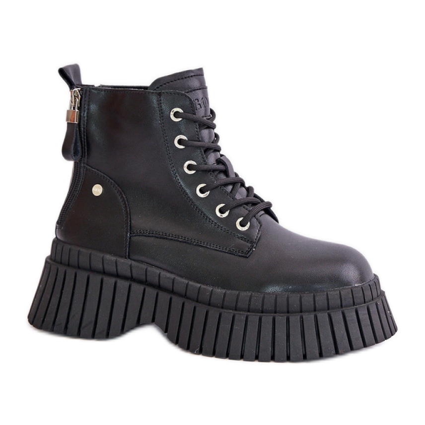 Trapers model goe oo2N4126 black - Step in Style is the perfect choice for women who value both elegance and comfort. These stylish shoes are made of high quality natural leather, which ensures not only durability, but also comfort throughout the day. Thanks to the massive sole, the trappers offer excellent adhesion on various surfaces, ideally suited to cooler days.