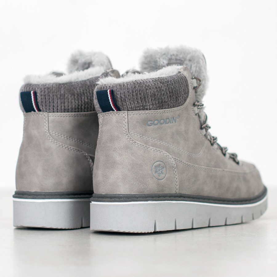 The Goodin platform boots in grey are the perfect choice for women who value comfort and style in one. Made of suede eco-leather, these shoes are a great choice for vegans and vegetarians. They offer not only an attractive look, but also comfort thanks to the soft, rounded upper that reaches above the ankle.
