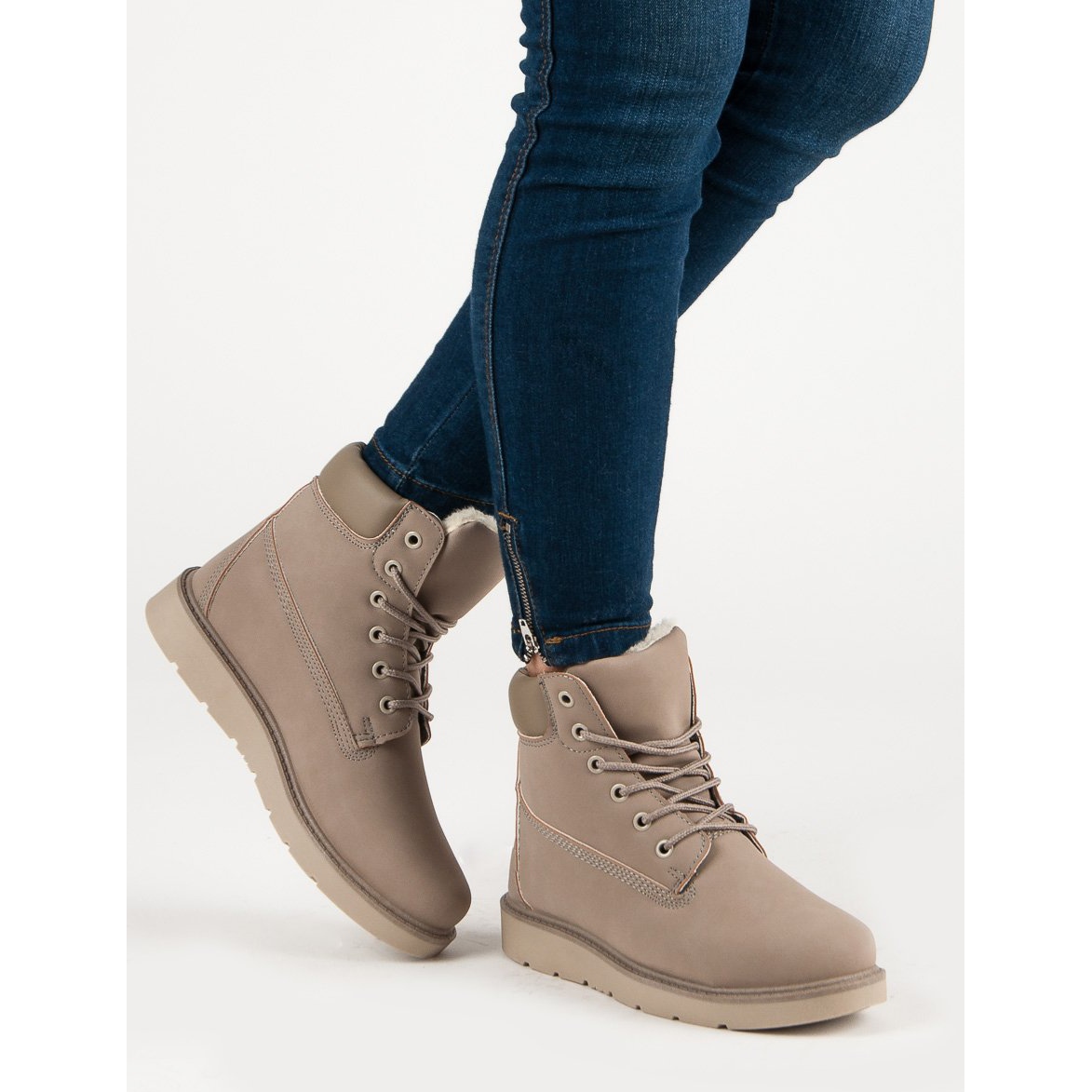 Their brown color is extremely versatile, so you can easily match the boots to various outfits. Made of materials with appropriate insulation properties, they will provide warmth even on colder days. The round toe and the closed, soft heel counter guarantee comfort, and the 13 cm shaft height protects the ankles well.