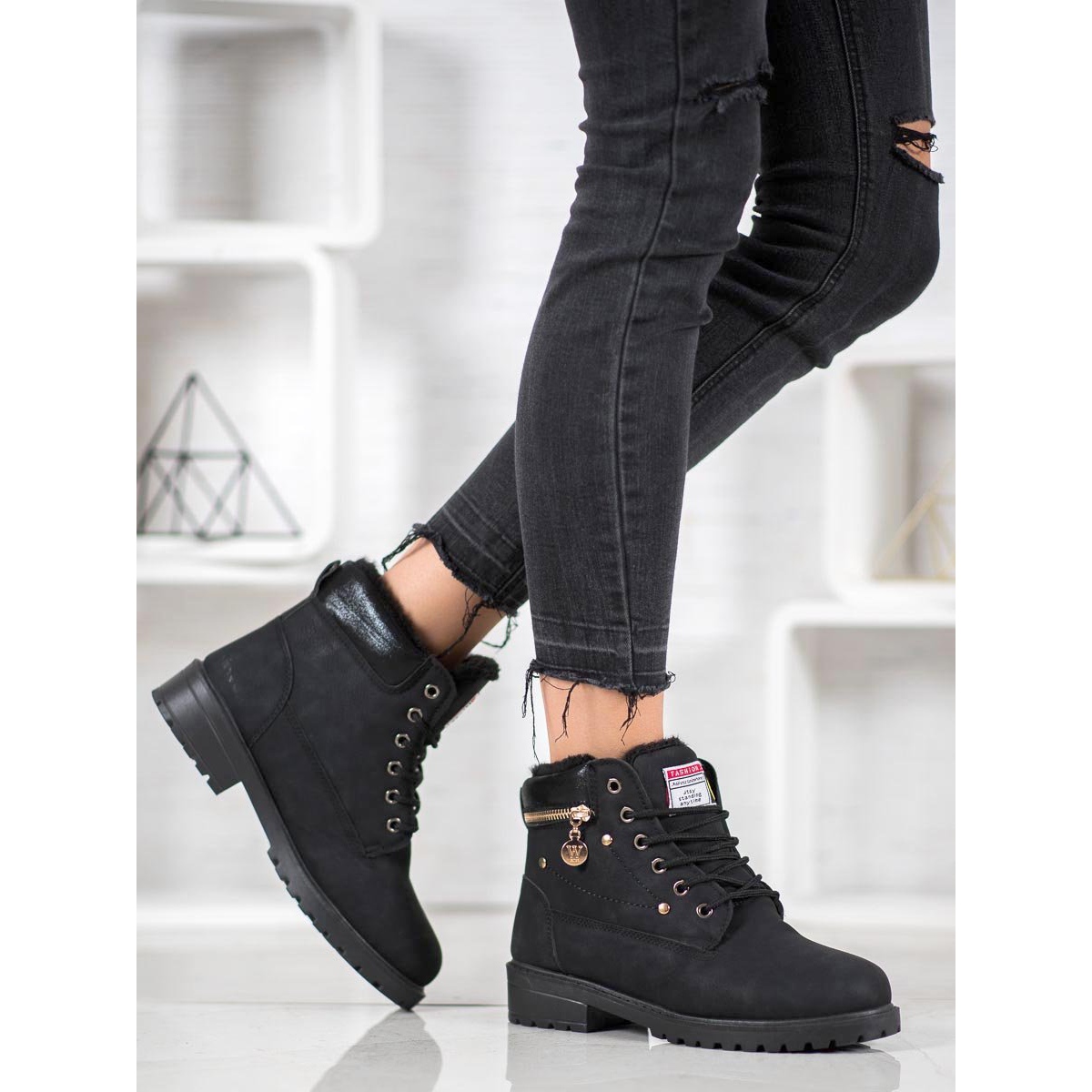 Here are the SHELOVET trapper boots, which combine fashionable design and comfort. Made of high-quality eco-leather in a classic black color, with a design reaching above the ankle, these shoes are perfect for cold days, offering not only style, but also the right interior insulation in the form of soft fur.