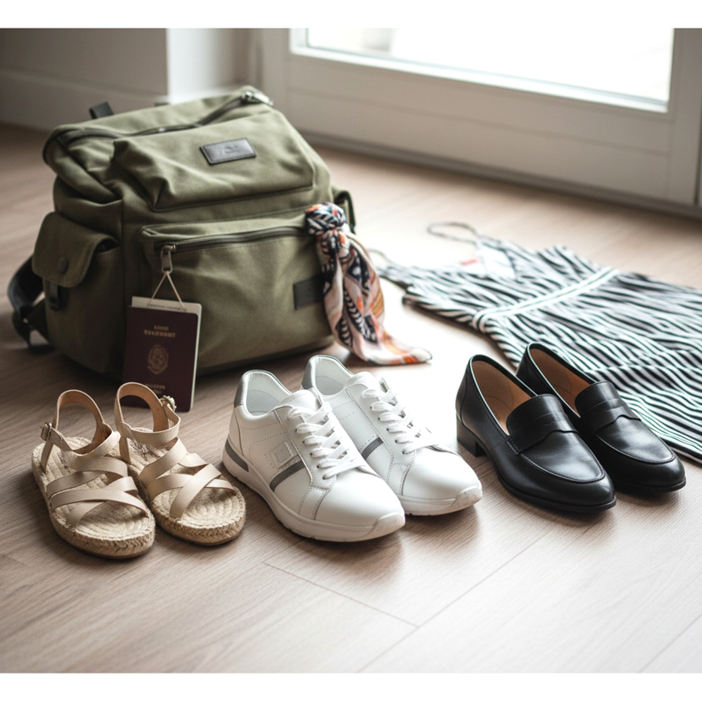 A proven formula for every trip is the rule of three pairs: comfortable shoes for sightseeing, elegant shoes for going out and beach or sports shoes, depending on the nature of the trip. This combination covers virtually every situation, from a morning jog to an evening dinner.