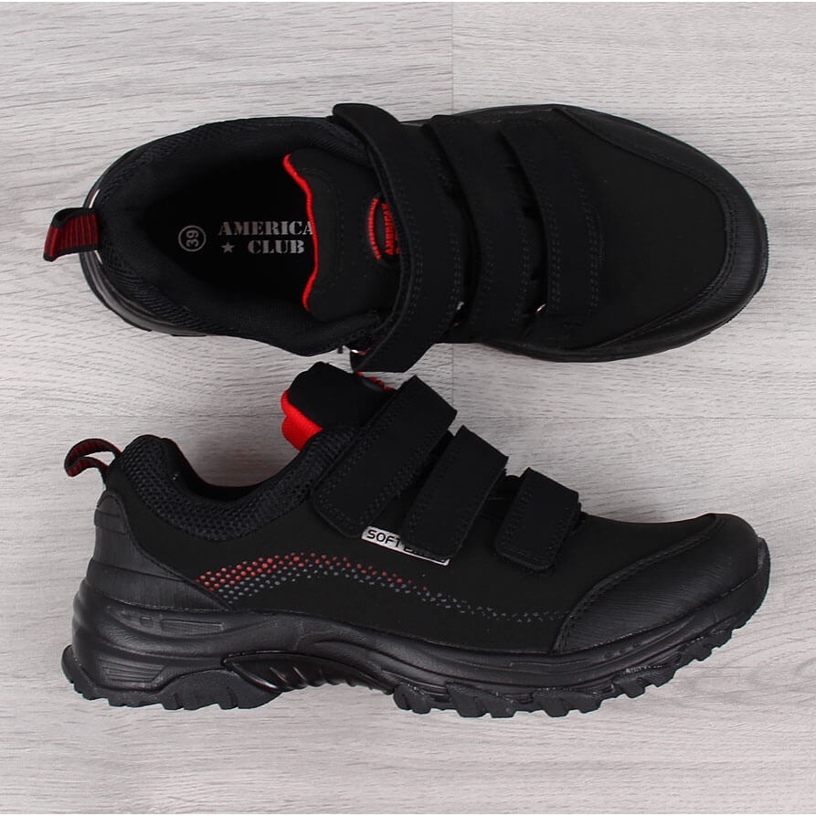Details: Trekking shoes with Velcro waterproof black and red American Club