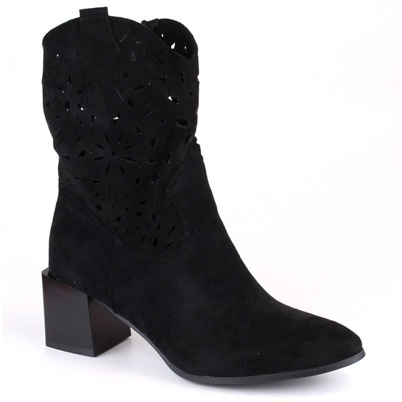 Elegant and stylish cowboy boots in Jez417a are a proposal for women who are looking for universal shoes for the autumn -winter season. The openwork finish gives them lightness and fashionable character, and classic black makes you easily adapt them to many styles - from casual jeans to boho style dresses.