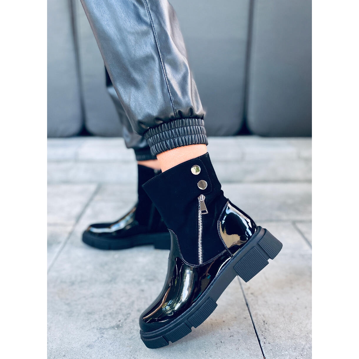 Unni Black patent leather boots are the perfect choice for every woman who wants to combine fashion with comfort in everyday styling. These elegant, black boots with a high sole are distinguished by a classic color that perfectly matches any wardrobe. Their modern design with a high upper and an effective combination of patent and matte eco leather make them not only stylish but also eye-catching.