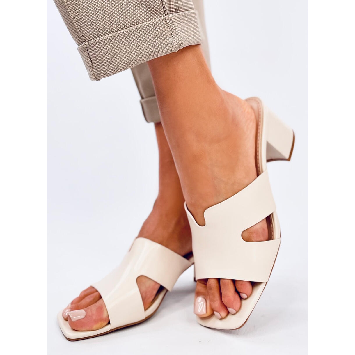 With a 6 cm high heel and a wide post, this model ensures stability and comfort throughout the day. A classic, smooth pattern without a nose makes these flip -flops match both everyday and more elegant stylizations. They will work perfectly for special occasions, as well as during meetings with friends.