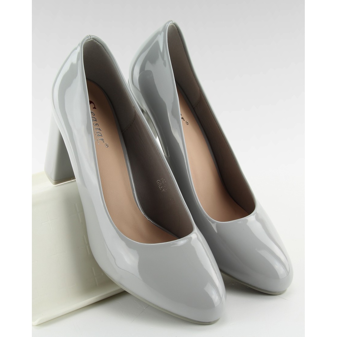 Inna marka Varnished pumps wide heel m263p Gray grey