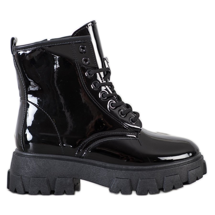 We present elegant and practical patent leather platform boots from SHELOVET. These black ankle boots are the perfect choice for women who value a fashionable look in a casual style. Thanks to the built-in, soft heels and insulation, the boots provide comfort and warmth on colder days of the autumn/winter season.