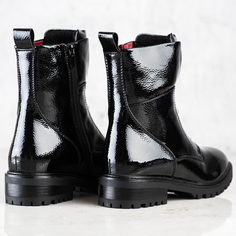 Discover extraordinary style and comfort with Erynn Patent Leather Workers with Zip in black. These elegant boots, made of 100% eco-leather, are the perfect choice for the colder days of the fall/winter season. Thanks to the insulation and the built-in, stiffened heel, your feet will always be warm and protected.