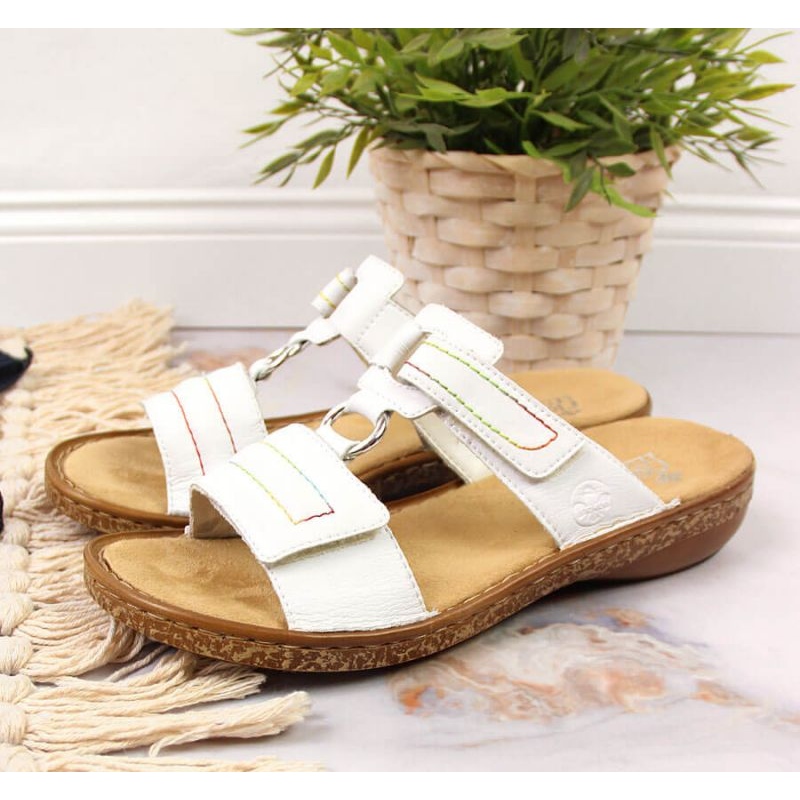 Rieker W RKR511 Velcro Leather Flip-Flops in white are a great option for women who value comfort and fashionable design for summer days. Made of high-quality natural leather, these shoes combine elegance and a free casual style, making them ideal for a walk, shopping or meeting with friends.