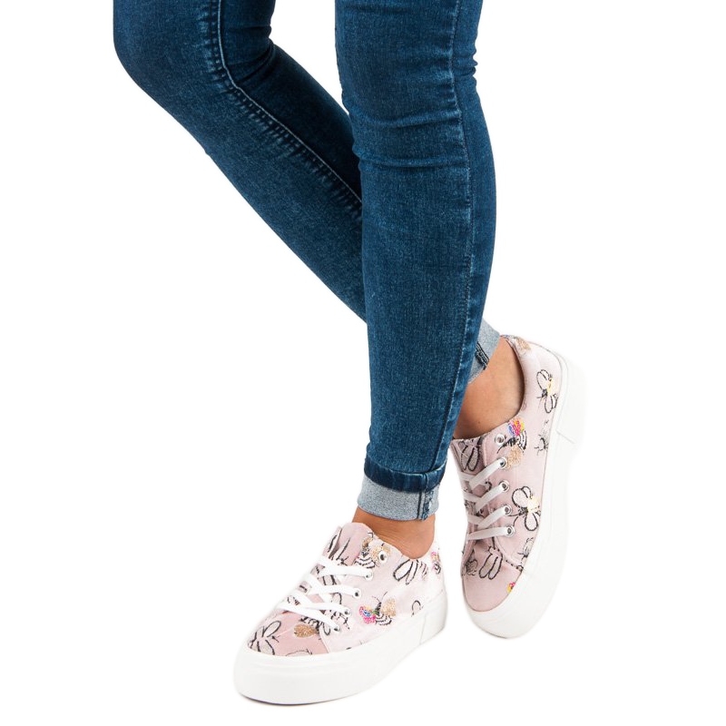 Introducing the adorable pink and white platform sneakers from Kylie. These unique shoes feature a fabulous, colorful insect pattern, making them a great way to liven up any style. Regardless of age, every woman will appreciate their original design and comfort of use.