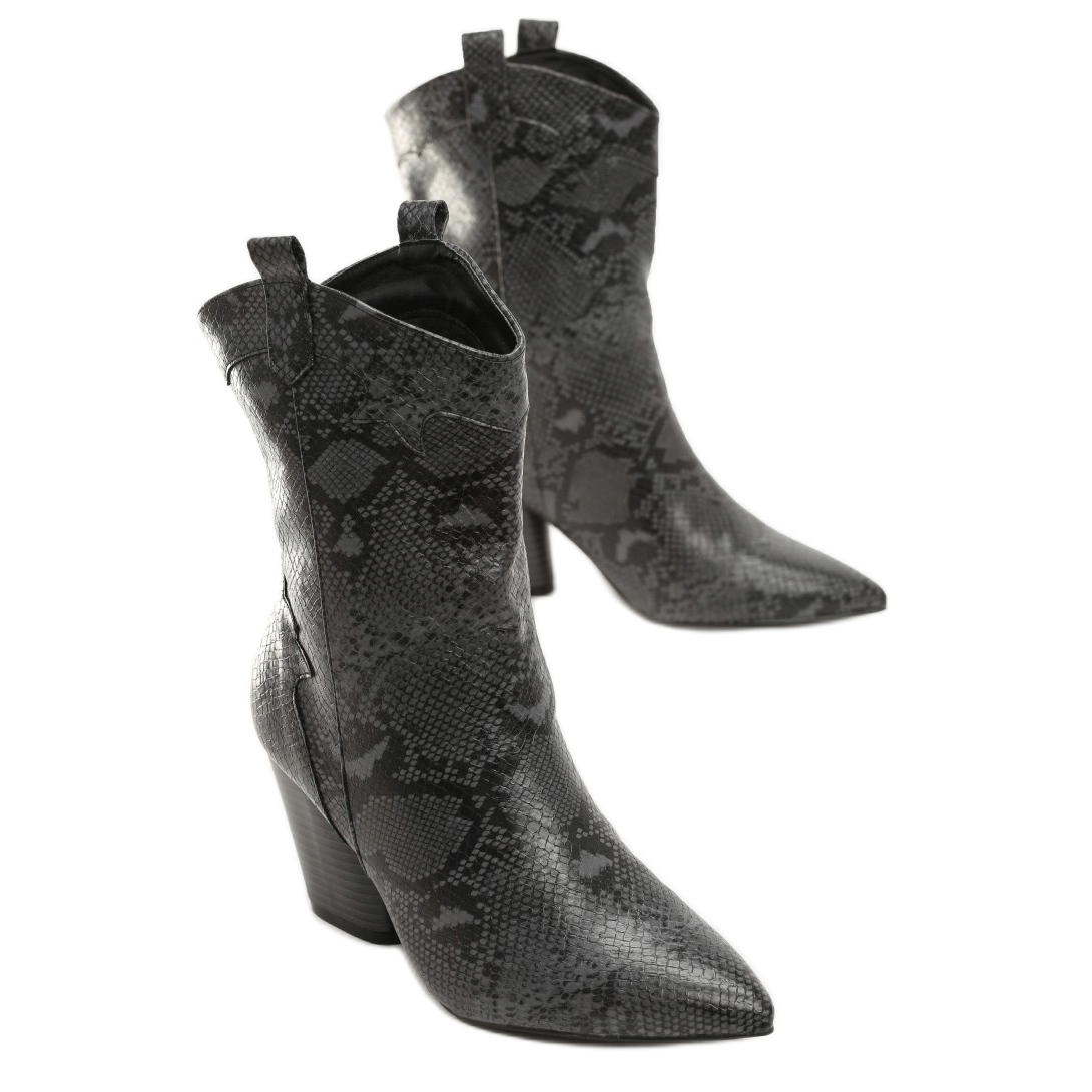 Discover the extraordinary style and comfort offered by the Vices 1585-38-black ankle boots in shades of black and a multi-color pattern. These elegant ankle-high cowboy boots are the perfect choice for spring and autumn days, combining fashionable design and practicality. Made of high-quality eco-leather that imitates snakeskin, they will add a distinctive character to your style.
