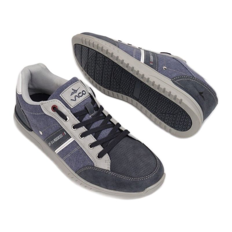Vices 19N130-50 navy blue sports shoes are a great choice for men who value comfort and a fashionable look. These low shoes with a flat sole are perfect for both everyday and sports styling. Made of durable synthetic nubuck on the front and back, as well as elastic textile material on the sides, they provide comfort and ventilation.