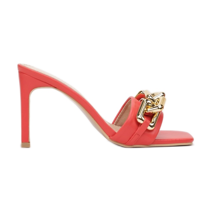 Slip-on flip-flops with a square toe are characterized by a wide strap that crosses between the toes and the instep. Decorated with a gold chain, they add chic and attract attention. Made of high-quality eco-leather, they provide not only an aesthetic appearance, but also durability and ease of care.