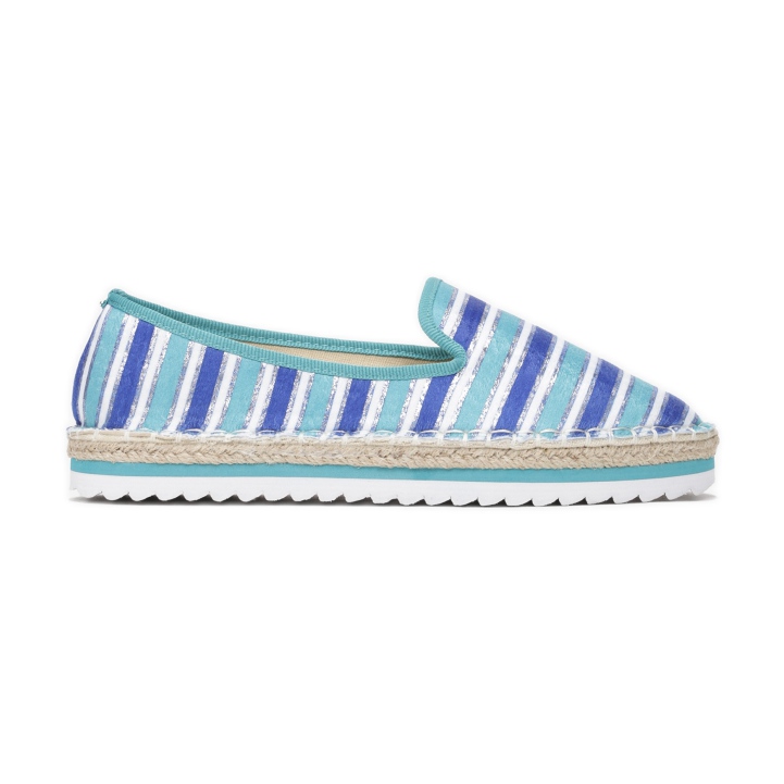 The shoes have a round toe and a flat heel with a height of 2.5 cm, which ensures comfort of wearing all day long. Thanks to the slip-on fastening, putting them on is quick and easy. Made of high-quality materials, the outer layer is a different material, which makes the espadrilles look very elegant. The fabric-filled insole and synthetic sole guarantee comfort and a perfect fit.