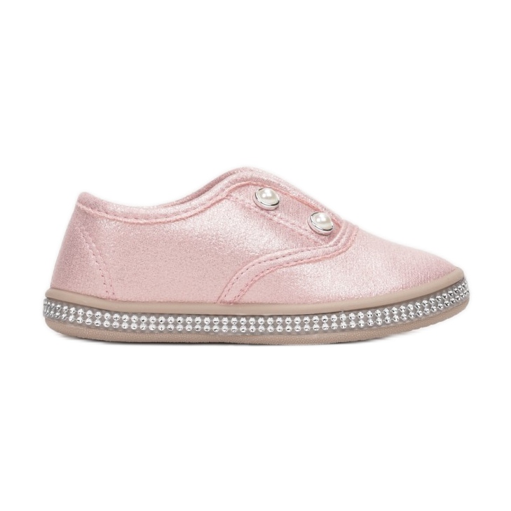 The front of the sneakers has been designed with a wide, elastic rubber, which makes them easy to put on and ensures a comfortable fit to the foot. Additionally, there are inserts made of imitation pearls on the top, which give the shoes subtlety and girlish charm. The round toe makes the shoes comfortable and adapted to the natural shape of the foot, which increases their functionality.