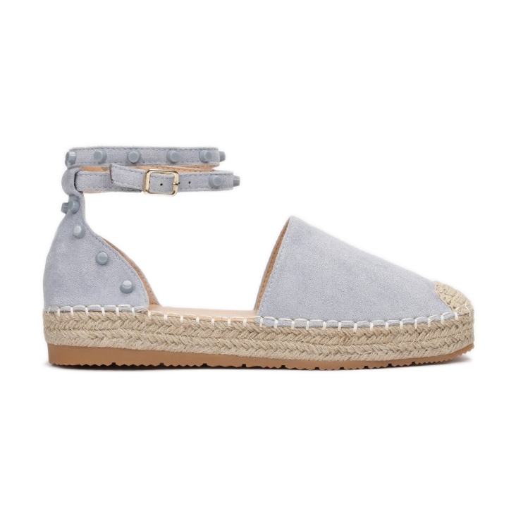 Thanks to the buckle and strap around the ankle, these blue sandals perfectly fit the foot, which ensures stability and freedom of movement. Additionally, decorative rivets in the same color emphasize their modern design. Made of ecological suede, the sandals are environmentally friendly, and the outer material and insole made of ecological leather ensure durability and comfort of wearing.