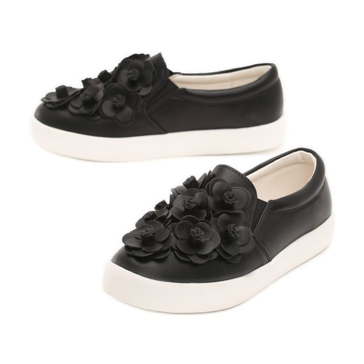 The shoes are characterized by unique applications that give them character and distinguish them from other models. The natural leather insole ensures comfort of wearing, and the 2 cm high rubber platform guarantees stability during every step. The round toe and flat type of heel make the footwear not only stylish, but above all comfortable.